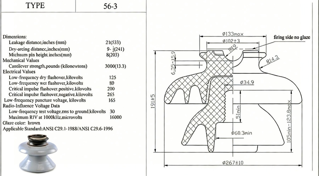 Low frequency wet flashover voltage | kv | 60 | 70 | 80 | 95 | 125 |